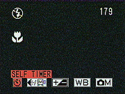 - Self-Timer: Offers two- and 10-second self-timer modes, or returns to the normal capture mode.