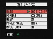 - Date: Sets the camera's internal calendar and clock, as well as the time display format.