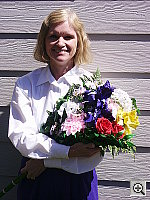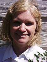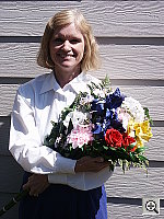 The extreme tonal range of this image makes it a tough shot for many digicams, which is precisely why I set it up this way. (And why I don't use fill-flash on it either.) The object is to hold highlight and shadow detail without producing a "flat" picture with muddy colors, and the Dimage S404 had a little trouble with the harsh lighting. The shot at right has a +0.3 EV exposure adjustment, which brightened the midtones to the point that I considered acceptable, though at the expense of some highlight detail. The overall exposure shows high contrast, which is corrected somewhat (but only a little) with the low contrast option discussed below. I chose the Daylight white balance setting for the main shot, as the Auto setting was slightly warm, and the Manual setting had a yellow cast. Skin tones are a little pale, but nearly accurate. Marti's blue flowers and pants are a bit dark and have just a hint of purple in them, but not to the extent of many cameras - Overall the S404 does a pretty good job on the color here. (These blues are difficult for many digicams, often turning out nearly pure purple.) Resolution is very high, with great detail throughout the frame. Details are also very crisp, with good definition even in the shadows. Noise is minimal in the shadow areas. To see the full exposure series from zero to +1.0 EV, see files S44OUTDM1.HTM and S44OUTDP0.HTM through S44OUTDP3.HTM on the thumbnail index page. sRGB Conversion