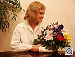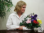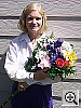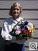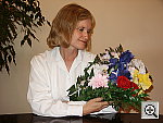 Good intensity, though a color cast from the room lighting. The S404's flash does a good job of illuminating the subject, with good intensity. The fairly strong incandescent lighting in the room results in a noticeable orange color cast, but color on the model and in the flowers is nearly accurate. The shot at right has a +0.3 EV exposure adjustment, as zero exposure compensation is just a little dim, and a +0.7 EV adjustment is too bright.