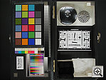 - Optical Distortion: Optical distortion on the S5 is high at the wide-angle end, where I measured an approximate 1.0 percent barrel distortion. The telephoto end fared somewhat better, as I measured a 0.5 percent pincushion distortion. Both numbers are higher than average among competing cameras. (Typical numbers are 0.8% barrel and 0.1-0.3% pincushion, still too much barrel distortion IMHO.) As I observed in other tests I shot, there's quite a bit of softness in the corners of the image, particularly along the left-hand edge. The good news is that there's almost no chromatic aberration though, with almost no coloration along the edges of the res target elements. (This distortion is visible as a very slight colored fringe around the objects at the edges of the field of view on the resolution target.)