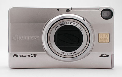 Kyocera has now expanded their line with the Finecam S5, a five-megapixel update to the previous four-megapixel S4 model (billed as the "world's smallest four-megapixel camera with 3x zoom" by Kyocera). The S5 is likewise quite small, and features the same 3x optical zoom and handful of exposure controls. New exposure options on the S5 include a Night Backdrop (slow-sync) flash mode, expanded ISO options (Auto, 100, 200, and 400), sound recording ability, and Chroma and Sharpness image adjustments, among others. Besides the enhanced controls, my tests show that Kyocera has also significantly improved the image quality in the S5 as well. Read on for the details.