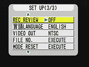 - Language: Sets the camera's menu language to Japanese, English, French, German, or Spanish.