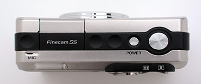 Tiny and lightweight, the Finecam S5 definitely ranks among the smaller digicams out in the marketplace. Measuring 3.62 x 2.26 x 1.30 inches (92 x 58 x 33 millimeters), the S5 easily fits most standard shirt pockets and small purses. The telescoping lens retracts almost flush with the camera front, keeping the front profile fairly smooth. The camera's wrist strap is great when holding the camera in-hand, but I recommend a small camera bag to protect the camera's attractive silver finish when traveling. The metal body is a matte-silver with black, plastic accents, and is lightweight at just 5.8 ounces (165.5 grams), with the battery and memory card.