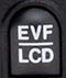 EVF/LCD Button: Below right of the EVF eyepiece, this button alternates the viewfinder display between the eye-level viewfinder and the rear-panel LCD monitor.