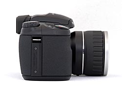 The right side of the camera (as held from the rear) is pretty bare, showing only a neck strap attachment eyelet above the name plate.