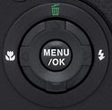 and Shutter Priority modes. The center Menu/OK button both activates the menus