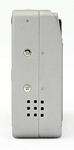 The opposite side of the Optio S5i is nearly featureless, except for the nine small holes of the speaker grille.