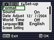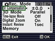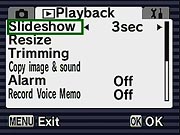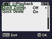 Perhaps the most unique feature is Food mode, which "lets you take appetizing pictures of prepared food." Soft focus mode gives pictures a soft effect. In Digital Filter mode, the camera offers Color and Slim filter settings. Pressing the down arrow when the Digital Filter icon is highlighted on the virtual dial accesses the available filters. Color filters include black and white, sepia, red, pink, violet, blue, green, and yellow filter effects. The Slim filter lets you "squeeze" your subject in eight steps vertically or horizontally. The User setting lets you customize a set of camera functions, such as flash mode, white balance, etc., which can be instantly recalled. Finally, Marine mode is set when the camera is placed in the optional waterproof housing for better exposures underwater. (Pressing the Quick button in Marine mode switches to Marine Movie mode.)