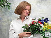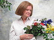Color balance indoors under incandescent lighting was slightly warm in Auto white balance mode, while the Incandescent setting had more of a magenta tone overall. Manual mode was the most accurate, though skin tone here was a bit warm and reddish. The S5 IS required a +1.0 EV exposure compensation boost to get a good exposure, about average for this shot. Overall color with the Manual white balance setting is quite good, though the blue flowers are quite purplish. (Many digital cameras reproduce these flowers with a dark, purplish tint.) Our test lighting for this shot is a mixture of 60 and 100 watt household incandescent bulbs, a pretty yellow light source, but a very common one in typical home settings here in the U.S.