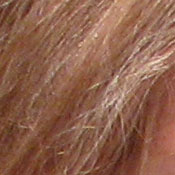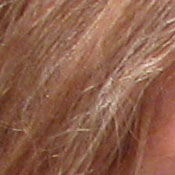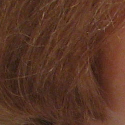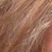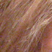 Detail. The crop above right shows fairly high noise suppression, with darker areas of Marti's hair showing limited detail. Individual stands are hinted at in the shadows, but not quite distinct enough. Noise-suppression systems in digital cameras tend to flatten-out detail in areas of subtle contrast. The effects can often be seen in shots of human hair, where the individual strands are lost and an almost "watercolor" look appears.