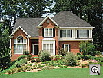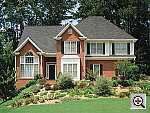 | Far-Field Test Excellent resolution and detail, good dynamic range. (Although the latter is helped somewhat by the hazy conditions on the day of the shoot.) This image is shot at infinity to test far-field lens performance. NOTE that this image cannot be directly compared to the other "house" shot, which is a poster, shot in the studio. The rendering of detail in the poster will be very different than in this shot, and color values (and even the presence or absence of leaves on the trees!) will vary in this subject as the seasons progress. In general though, you can evaluate detail in the bricks, shingles and window detail, and in the tree branches against the sky. Compression artifacts are most likely to show in the trim along the edge of the roof, in the bricks, or in the relatively "flat" areas in the windows. This is my ultimate "resolution shot," given the infinite range of detail in a natural scene like this, and the S60 did an excellent job with it. Resolution is excellent, with outstanding detail in the tree limbs above the roof, as well as in the fine foliage in front of the house. Leaf patterns are clear and distinct, and the house details are also well-defined. Details are sharp and clear, although there's some softness in the corners, and evidence of lens flare and coma in several areas where the tree limbs and foliage are silhouetted against the sky. (Overall, it looks like the advanced lens technology Canon used in this camera let them compress a wide-angle nearly 4x zoom into a very compact package, but the distortion level remained similar to that of larger lenses with similar wide-angle and zoom ratio. - Its image quality is really not a lot better or worse than full-sized lenses of similar characteristics, the advantages of the new technology apparently being fully utilized just to compact the optics into the small form factor.) The camera picks up good detail in the bright white paint surrounding the bay window, a tough spot for many digicams. Detail is also excellent in the shadow area above the front door, further evidence of a good dynamic range. In all fairness though, the sky was rather hazy on the day that the S60's samples were shot (a common and unfortunately unavoidable problem in the Atlanta area in the summertime), so the contrast ratio here wasn't as high to begin with as it was for some other cameras I've shot it with. Overall color looks good, and exposure is about right. The table below shows a standard resolution and quality series, followed by ISO, sharpness, saturation, contrast, and color series. Resolution Series: