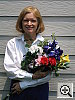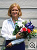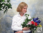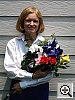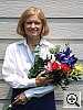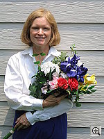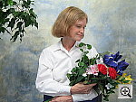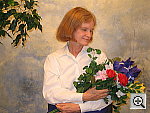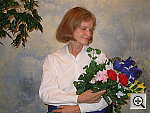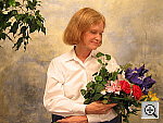 Great resolution and detail, with accurate color. The extreme tonal range of this image makes it a tough shot for many digicams, which is precisely why I set it up this way, and why I shoot it with no fill flash or reflector to open the shadows. The object is to hold both highlight and shadow detail without producing a "flat" picture with muddy colors, and the PowerShot S60 did a great job here. The shot at right was taken with a +0.7 EV exposure compensation adjustment, with its contrast option set to "low." The result was good-looking midtones with very little sacrifice of highlight detail. (Although in fairness to other cameras, this was shot on a fairly hazy summer day, so the contrast ratio wasn't as high as it sometimes is. - I'm working on a new light source, to move this shot into the studio, to avoid such variations in the future.) I felt that the Daylight white balance setting did the best overall job here, although the Auto and Manual settings both produced good results as well. The color looks pretty good throughout the frame, although Marti's skin tones are just a little warm, with a slight yellowish tinge to them. The blue flowers in the bouquet look very good, with only faint purplish tints in the darker areas, a very faithful rendering of the original. (This is a troublesome blue for many digicams to get right, with many tending to render it with a lot of purple in it. The PowerShot S60 handled it very well here.) Color saturation is good as well, though the red flowers are just slightly oversaturated. Resolution is excellent, with a lot of fine detail visible throughout the frame, although there is some loss of detail resulting from the camera's noise suppression processing, visible in areas of subtle contrast, most noticeable in Marti's hair. Detail is strong in the shadows as well, and pretty low noise levels. All in all, an excellent performance. To view the entire exposure series from zero to +1.0 EV, see files S60OUTAP0.HTM