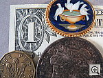are slightly soft in the coins and brooch, due to a limited depth of field