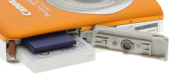The Canon SD1200' battery is a 1,000mAh, 3.7 volt lithium-ion design, model number NB-6L. The rectangular battery latches in place next to the memory card beneath a small hinged door. A single charge is good for about 260 shots. That's about average for its class, so definitely consider picking up a spare battery.