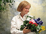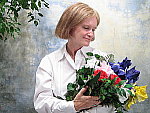 little high, but pretty good detail in the highlights and shadows. The extreme tonal range of this image makes it a tough shot for many digicams, which is precisely why I set it up this way, and why I shoot it with no fill flash or reflector to open the shadows. The object is to hold both highlight and shadow detail without producing a "flat" picture with muddy colors, and the PowerShot SD300 did a surprisingly good job for a camera with fairly simple controls. The shot at right was taken with a +0.7 EV exposure compensation adjustment, which is just slightly dark overall. However, the highlights became much too bright with any further increase in exposure. Midtones are just a little dark here, and contrast a bit high, but the overall result is still very good, particularly for a camera with no contrast adjustment option. All three of the SD300's white balance settings produced good results here, though I chose the Auto setting as the most accurate overall. The Daylight and Manual settings had slightly warmer casts. Marti's skin tones look very good here, as do the blue flowers in the bouquet. (Many digicams have trouble with this blue, but the SD300 gets them almost exactly right.) Though just slightly dark, color looks good throughout the rest of the frame as well. Resolution is very high, and a lot of fine detail is visible throughout the frame. Shadow detail is moderate, and image noise is low. All in all, an excellent job. To view the entire exposure series from zero to +1.0 EV, see files SD3OUTAP0.HTM