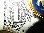 high, showing a lot of fine detail in the dollar bill, coins, and brooch.