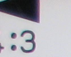 Chromatic aberration is moderate on the Canon SD430 at wide angle, showing about 6-7 pixels of moderately bright coloration on either side of the target lines, but decreases to very low levels at telephoto focal lengths. (This distortion is visible as a very slight colored fringe around the objects at the edges of the field of view on the resolution target.)
