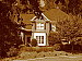 Like several of our tests, these images are actually photos of a high-resolution poster, shot under studio lighting. As of this writing, the poster in question was produced from a high-resolution scan of a 4x5-inch transparency, scanned to a resolution of about 150 megapixels. Even at that, it's starting to show its age, as the combination of camera lens, film emulsion and scanner resolution mean that many of the current 5+ megapixel cameras come close to capturing all the detail that's present. (We have a new poster under production, produced from 45 separate digital images, "stitched" into a single 400+ megapixel image, that should comfortably outpace the resolution of portable digital cameras for years to come. - Expect to start seeing shots of this new poster sometime in Fall, 2005.) Why did we choose to shoot a picture of a picture? The idea was to show a typical subject (a house and surrounding foliage) in a way that would be absolutely consistent from camera to camera. Any outdoor subject is going to vary considerably from day to day, as the lighting changes with the weather, atmospheric conditions, and season. Shooting a poster lets us compare images from cameras shot weeks, months, or even years apart, with the sure knowledge that nothing has changed from one shot to another. Things to look for here are fine detail, as seen in the foliage and tree limbs against the sky, sharpness in the corners, and the preservation of subtle detail in the shaded brick patterns. - Many cameras with overactive noise suppression severely blur the brick patterns that are in shadow. |
