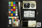 Generally very good color, hue-accurate and properly saturated. The Auto white balance produced the best color here, with the most accurate white value in the mini-resolution target and large, white color block. Manual white balance was rather yellow, and the Daylight setting a bit less so, but still warm. Color is generally accurate and well-saturated, although the red is slightly oversaturated, and the green slightly undersaturated. Image noise is only slightly higher than competing SLRs in the neutrals and most colors, but gets quite high in the red and magenta swatches. (I'm working on a more complete noise analysis, including noise at various ISOs, will post some comparative numbers as soon as I can get to it.)