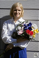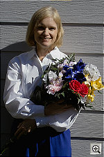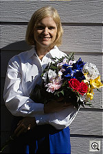 I was a little surprised to not find more headroom in the SD9's RAW-format files. While I haven't subjected them to my usual tests, I've seen demonstrations of Kodak's RAW file format, where it was relatively easy to recover excellent image data from shots that were overexposed by a full f-stop. In the next set of "shootouts" I do, I'll take a look at how effective different RAW file formats are at preserving data in extreme highlights and shadows for post-exposure manipulation. In terms of color, the SD9's shots of this subject came out looking pretty good, although Marti's skin tone was a little yellowish, and the blues and reds in the flowers were moderately oversaturated. At the same time, the greens in the leaves are rather flat and dull-looking. The SD9's white balance system seemed to do the best with the daylight setting - Auto seemed a little cool-toned, and manual came out quite yellowish.