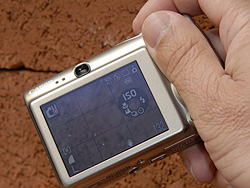 The PowerShot SD950 IS's Touch control dial, when activated, displays a small version of itself on the LCD. It magnifies whatever option your thumb is on, the active option. That's a real advantage with one-handed operation.