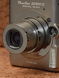 The PowerShot SD950 IS is an ELPH, though, so you still don't get manual control. But do you care? The DIGIC III processor with Canon's face detection autofocus (which also sets exposure and flash) delivers wonderful images with no work. That -- and the striking good looks of that titanium shell -- are the hallmarks of the ELPH line.