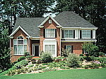 | Far-Field Test Moderately high resolution and detail, though exposure is contrasty and dynamic range is limited. This image is shot at infinity to test far-field lens performance. NOTE that this image cannot be directly compared to the other "house" shot, which is a poster, shot in the studio. The rendering of detail in the poster will be very different than in this shot, and color values (and even the presence or absence of leaves on the trees!) will vary in this subject as the seasons progress. In general though, you can evaluate detail in the bricks, shingles and window detail, and in the tree branches against the sky. Compression artifacts are most likely to show in the trim along the edge of the roof, in the bricks, or in the relatively "flat" areas in the windows. This is my ultimate "resolution shot," given the infinite range of detail in a natural scene like this, and the SL300R performed pretty well, relative to its 3-megapixel class. The tree limbs over the roof and fine foliage in front of the house show pretty good detail, with fairly good definition in the leaf patterns. Details are slightly soft throughout the frame, with increased softness in the two left corners, but the overall result isn't too bad. The camera loses practically all detail in the bright white paint surrounding the bay window, a trouble spot for many digicams, although the SL300R does worse than most with it. Detail is also low in the shadow area above the front door, further evidence of a limited dynamic range, doubtless due at least in part to the camera's high native contrast. Exposure is a bit bright, with high contrast. The camera's Auto white balance setting produced pretty good color, but with a slight greenish cast. The table below shows a standard resolution and quality series, followed by ISO, sharpness, saturation, and color series. Resolution Series: