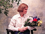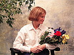 Very high contrast with dark midtones, and a slightly cool color balance. The extreme tonal range of this image makes it a tough shot for many digicams, which is precisely why I set it up this way, and why I shoot it with no fill flash or reflector to open the shadows. The object is to hold both highlight and shadow detail without producing a "flat" picture with muddy colors, and the Finecam SL300R had a fair bit of trouble here. The shot at right was taken with a +0.3 EV exposure compensation adjustment, which resulted in very dark shadows, with very bright highlights, and almost no midtones. Detail is all but completely lost in the brightest highlights, though the deep shadows do manage to hold onto a moderate amount. (Here's a shot at the default exposure, which is very dark.) I chose the Daylight white balance setting, though it produced slightly cool results similar to the Manual option. The Auto setting was warmer, but too warm for my taste. The cool cast and high contrast result in pale skin tones, and the blue