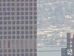 "Police should have these," Mom said when I showed her what the Olympus SP-550 UZ could do. It can see without being seen. The gallery shots have several examples of this -- but you really have to be told that the shots go together (look at the file names for close sequences). There's one of Stow Lake with a pagoda, another of the Conservatory whose closeup is the front door handle. And then there's my standard shots from Twin Peaks -- except in this case my digital zoom shot shows a retirement party in the Bank of America building (well, nearly).