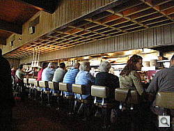Long zoom is fun and long zoom is what you buy the Olympus SP-550 UZ for, but it's pretty capable of ordinary shots, too. At lunch one day, I set it to ISO 1,600 and grabbed a shot of the counter at Joe's. What I liked about the shot is that it captures the atmosphere, the color, the tone, even if it sacrifices some detail. In fact, I kind of hoped the SP-550 UZ would sacrifice some detail, since I didn't want any recognizable faces. There's certainly plenty of noise in the shadows, but the thumbnail itself makes me smile.