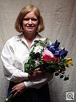 The other important part of color rendition is hue accuracy. Hue is "what color" the color is. On this score, the Sony DSC-S40 tended toward darker hues in the greens and blues, though the blue flowers of the bouquet don't show any strong purplish tints (many digital cameras produce deep purple tints here).