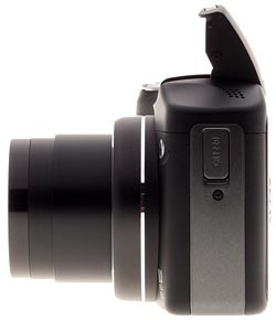 The Canon SX100IS' built-in flash strobe is raised and lowered manually, but offers only average strength. Flash output strength can be set manually, and there's also a flash exposure compensation function that allows you to let the camera meter the scene, but bias the flash strength as desired. The Flash Exposure Lock function allows the user to bias the exposure toward faster shutter speeds and wider apertures, or vice versa. There's also a Safety Flash Exposure function in Program, Aperture-priority and Shutter-priority modes that can override the aperture or shutter speed as required to minimize the risk of blown highlights. Canon takes a two-pronged approach to combatting red-eye, with an optional burst of light from the camera's AF Assist lamp to reduce red-eye problems before the fact, while a Red-Eye Correction function in playback mode allows you to fix red-eye problems once the photo has already been captured.