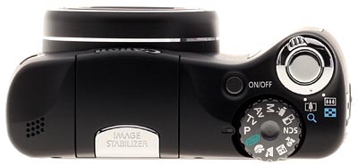The Canon SX100's control layout is simple and intuitive. The mode dial falls under your right thumb, adjacent to a nicely recessed power button and a zoom rocker with central shutter button. The mode dial has deep notches that make it easy to grip and turn, a reassuringly firm click as it moves to a new position, and has just enough resistance to ensure it won't be accidentally bumped during a shoot. When the dial is turned, an intuitive animation on the camera's LCD indicates the change, showing the available modes scrolling past with the current selection highlighted.