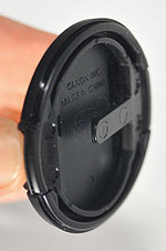 Same old cap. The SX10 IS's lens cap maintains the spring-loaded buttons, but the cap still doesn't stay on well. A clip in the center slides onto the camera strap for storage.