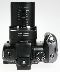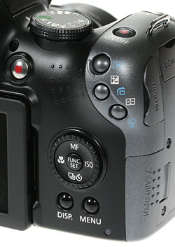 Canon has redesigned the control features of the SX10 IS. The S5 experimented with a lever and recessed switch borrowed from the Canon G-series cameras to turn the camera on and off and switch modes; clearly, this system wasn't popular, as Canon went back to the drawing board.