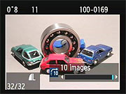 The jump menu setting only applies when we were in single-image playback mode, displaying a screen like that above when we used the Main Dial to scroll between stored images. In thumbnail display mode, the Main Dial always jumped ahead one screen of thumbnails at a time, regardless of the menu setting for the Jump option. |