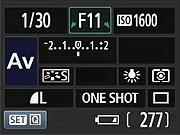 Pressing any of the arrow keys to the right of the Canon T1i's LCD screen immediately brings up a screen for the exposure parameter associated with that button. Once the option screen is displayed, you can use either the arrow keys or the Main Dial to scroll the cursor highlight through the options presented. When you've made the choice you want, pressing Canon T1i's Set confirms it and returns you to the main shooting display. Alternately, you can just continue to press the same arrow-key button and the highlight will scroll through all the options, wrapping around when it gets to the end of the list.