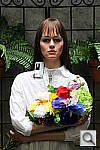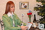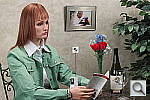 This shot duplicates indoor shooting conditions in most US homes, with fairly bright incandescent room lighting. The challenge here is for the camera's flash to blend naturally with the room lighting, and produce good, neutral color overall. - Some cameras will be overly affected by the room lighting, even with their flash enabled, and the result will be a strong orange cast. Another common failing is for the highlights from the flash to take on an unnatural bluish cast. Finally, exposure is important here, and frequently a tough challenge for the cameras. The model's white shirt is central in the scene, reflecting a lot of the light from the flash right back at the camera. As a result, most cameras underexpose this shot, and require some positive exposure compensation to produce a good result. - And that's an important consideration in itself: Does the camera even permit adjustment of its flash exposures? Many do not. These photos are a tough exposure challenge, if they come out OK, the camera in question can probably be coaxed into delivering a good flash exposure of any subject within its range. Note too, that the normal flash shot (as opposed to the slow sync one, if the camera offers that feature) will be sharply rendered, any subject or camera movement frozen by the quick pop of the flash. That makes this shot a good one to look for the effect of over-aggressive noise suppression in the model's hair. To view the exposure series from zero to +1.0 EV in the normal flash mode, see files T1IINBFP0.HTM through T1IINBFP3.HTM on the thumbnail index page. To view the same series in the Slow-Sync flash mode, see files T1IINBFSP0.HTM