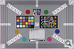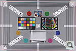 Our new "Multi Target" was first put into use in April, 2009, replacing the earlier "interim" design. This target incorporates a number of elements that combine aspects of the previous Multi target, as well as the previous Viewfinder Accuracy or "VFA" chart. Here's some of what you'll find in this target: Framing marks: This chart evolved from the earlier Viewfinder Accuracy chart, so one of its major uses is to measure viewfinder accuracy. (See notes in the Viewfinder Accuracy section, at the bottom of this page, for more information on this.) USAF resolution targets: An important use of this target is in evaluating lens quality, looking how well sharpness holds up as you move from the center to the corners of the frame. The little "USAF" resolution targets arranged at the center, in the corners, and along the diagonals are very useful for making fine judgements about blur, flare and aberrations in the image. We generally show crops of a USAF chip from a corner of the target and from the center, to show how lenses hold sharpness at wide and telephoto focal lengths. Alignment "bullseyes:" We find these graphics from the graphic arts world (used to align sheets of film in the old film-based prepress days) very useful for seeing chromatic aberration in lenses. The bold black/white elements are good for seeing the colored fringes caused by CA in the corners of the frame. MacBeth ColorChecker Chart: This is about as common a color standard as you can get these days, very widely available for only mildly exorbitant cost, and quite well controlled in its production. It thus serves as a good basis of comparison between cameras and between test setups. Imatest also understands the MacBeth colors very well, and uses them to produce its color accuracy map that we feature in all our reviews. MacBeth ColorChecker SG Chart: The ColorChecker SG chart provides a wider range of colors, to give a more detailed map of a camera's color handling. We haven't begun using this chart in the color-accuracy graphs we routinely offer, but expect to do so at some point in the future. In the meantime, we sometimes refer to this chart internally, to get a more complete idea of what a camera's color map looks like. Log C/F Target: The progressive resolution pattern located just below the center of the target is a Log C/F (logarithmic contrast vs spatial frequency) chart. Digital camera noise reduction routines work by looking at levels of local contrast, flattening-out detail at progressively lower spatial frequencies as the local contrast decreases. (This is very commonly seen in human hair, grass, foliage, and other subjects with subtly-contrasting fine detail.) This chart lets Imatest analyze just how a camera makes the tradeoff between contrast, detail, and image noise. Color Starbursts: The six circular starburst elements arranged around the target are intended to reveal de-mosaicing artifacts and color-dependent resolution issues. The six starbursts provide examples of each combination of RGB colors intersecting each other. (That is, red, green, and blue against black, plus red against green, green against blue, and blue against red.) Given that the most common sensor RGB color filter pattern (the so-called Bayer) pattern has twice as many green pixels as red or blue, you'll generally see that the green/black starburst shows the best resolution, while the blue/red one shows the worst. The effects of different sensor geometries and color filter array patterns will be revealed here. Musicians Image: Synthetic test patterns only tell you so much. While we have a lot of pictorial images in our other test targets, we thought it would be useful to include a small "natural" image here as well.