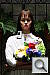 "Sunlit" Portrait: The lighting in this shot is deliberately awful, about what you'd expect from noontime sunshine here in the Atlanta, GA area. (In fact, the color balance has been chosen to pretty well match the hazy sunshine here in mid-August.) The reason for the harsh lighting is to provide a real "torture test" of how cameras handle conditions of extreme contrast; and in particular, how well they do holding onto highlight detail. Look for: