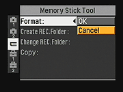 The Sony DSC-T9 stores images on its 58MB internal memory, or on Sony Memory Stick Duo and Memory Stick PRO Duo memory cards, available separately in capacities as large as 2GB. Since the camera doesn't come with a Memory Stick, I'd recommend purchasing a larger capacity card so you don't miss any shots. New to the T9 is an expanded slide show option in Playback mode, which lets you load music onto the camera to accompany slide shows, as well as choose slide show styles (such as Nostalgic, for example). For power, the Sony T9 uses a single NP-FT1 Info-Lithium battery pack, which accompanies the camera, along with the necessary charger. An included multi-use USB / A/V cable comes with the camera, and connects the camera either to a computer or television. A software CD is loaded with Sony's Picture Package and Music Transfer software (for slide show accompaniment) and USB drivers, for downloading and organizing images.