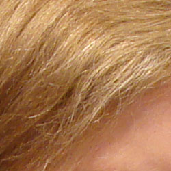 | Decent contrast, but slightly soft for a Sony digital camera. | Subtle detail: Hair Noise suppression tends to blur detail in areas of subtle contrast, as in the darker parts of Marti's hair here. |