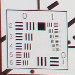 Our laboratory resolution chart revealed sharp, distinct line patterns down to about 1,300 lines per picture height vertically, though to about 1,250 lines horizontally, with extinction at around 1,900. (The camera did produce slight color artifacts at lower line frequencies though, visible in the full-sized res target shots.) Use these numbers to compare with other cameras of similar resolution, or use them to see just what higher resolution can mean in terms of potential detail. Beware that while you might be able to make out what looks like distinct lines at numbers higher than those we've mentioned here, the camera is just doing its best to continue interpreting the lines. If you zoom in and follow them from the wider portions, you'll see the lines converge and reappear several times, so the lines you see at 1,500 and higher are really only artifacts generated by the camera's imaging system.