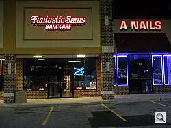 Handheld Twilight mode is similar, taking six images and merging them into one for a low-noise low-light shot. Normally you'd just raise the sensitivity to get a handholdable shutter speed, but the results of that strategy can be seen at right: heavy noise and softness from noise suppression. Sony's strategy with Handheld Twilight keeps the ISO low, fires off six slow shutter speed shots, and merges them into one, eliminating most motion blur in the combination process. Both of these shots were taken handheld from a truck with the engine running.