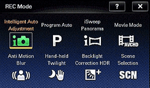Modes. Like almost all touchscreen digital cameras, the Sony TX7 does not have a physical Mode Dial. To change modes, just touch the Mode icon in the lower right corner of the LCD, which opens up a menu of options. Most of the shooting modes are pretty standard for point-and-shoot cameras: iAuto, Program AE, Movie Mode, and Scene Selection. There's also an Easy Mode for even simpler shooting. There are fewer choices (image size, flash, self-timer) than other modes and the on-screen text is larger. However, Sony takes the TX7 a step up with a few additions that utilize technology that you may not find on competing models. These features include iSweep Panorama, Anti-Motion Blur, Hand-held Twilight, and Backlight Correction HDR modes.