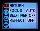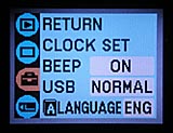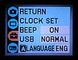 Because of the camera's full automatic exposure control, the DSC-U60's user interface is very straightforward, with only a few external controls. Because there are very few exposure adjustments to twiddle with, you just point and shoot most of the time. The LCD menu system is short and sweet, offering four tabs of menu options, with one page of choices each. (I did find that the limited number of external controls made the menu system a little tedious to use though, as there are only up/down arrows for navigation. This means that you have to alternate between these buttons and the "Exec" button to enter or leave the sub-menus, making for somewhat awkward navigation.) The Mode dial on the camera's rear panel lets you quickly set the camera's main operating mode, and you can cycle through the available scene modes by pressing the down arrow key when in normal shooting mode. It didn't take much more than a few minutes for me to get the gist of things, even without looking at the manual, so even beginners should be able to pull the camera out of the box and shoot right away.