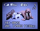 The DSC-U60 is equipped with a 5.0mm lens, equivalent to a rather wide-angle 33mm lens on a 35mm camera, with a maximum aperture of f/2.8. Focus ranges from approximately four inches (10 centimeters) to infinity under normal conditions, with a minimum focusing distance of six inches (15 centimeters) underwater. In addition to automatic focus control, the DSC-U60 offers four fixed focus settings through the Record menu. For composing images, the DSC-U60 offers a one-inch, color LCD monitor. The LCD monitor is at an angle on the back of the camera, meaning you have to hold the camera somewhat slanted to get it lined up straight. The LCD monitor in the U60 deserves special mention, as it's one of the most readable I've seen to date under all conditions, including bright, direct sunlight. I'm normally not a fan of cameras without optical viewfinders, in part because LCDs tend to wash out so badly in sunlight. The U60's LCD is a notable exception though, and the camera is very big as usable in direct sun as indoors.
