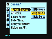 movies to be recorded at VGA resolution. A Clip Motion option, available through