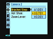 adjustable from -2 to +2 exposure values (EV) in one-third-step increments,